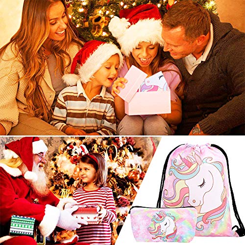 2.Pacchetto compreso: 1 borsa con lacci unicorno, 1 borsa per trucco con unicorno.