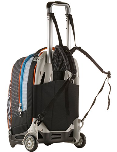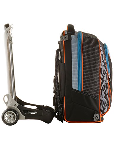 Trolley New Jack Tribal Boy, un trolley scomponibile! Possiede 3 modalità di utilizzo: 1. uso trolley con spallacci a scomparsa totale nello schienale; 2. uso zaino senza sganciare il carrello; 3. uso zaino quando completamente sganciato dal carrello (zaino lavabile) con nuovo sistema di fissaggio superiore degli spallacci per un maggiore comfort quando indossato, nuovo sistema crossover system, ruote da 80mm, barra doppia con due regolazioni in altezza, fondo rinforzato e protezioni angolari, logo Seven rifrangente. Capacità 35 litri