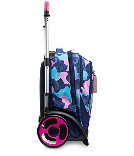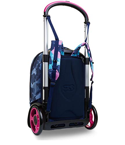 Il Trolley Seven Tyre CHARMING GIRL, con patch e stampa in glitter, dotato di maxi ruote da 17 cm, unisce stile e versatilità. Con molta facilità, infatti, da trolley diventa zaino e viceversa. Il carrello ha fondo rinforzato e protezioni angolari per garantire stabilità al trolley e protezione al contenuto. Lo sganci e diventa uno zaino lavabile, maxi capiente con tasca frontale, comodo da indossare grazie allo schienale preformato e agli spallacci imbottiti e traspiranti. Spallacci che, quando lo usi come trolley, possono essere a scomparsa o, grazie al CROSSOVER SYSTEM, sollevarsi automaticamente tirando su la resistente doppia barra telescopica con doppia regolazione in altezza, evitando che i nastri striscino a terra.