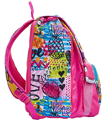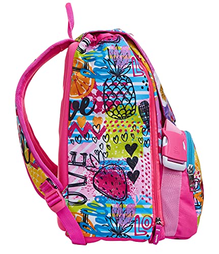 DIMENSIONI: Corpo: 27 x 41 x 16 cm – Allargamento: 27 x 41 x 6 cm; CAPACITA’: Chiuso 21 lt (inclusa tasca frontale) – Allargamento: 7 lt – Aperto: 28 lt CARATTERISTICHE: Zaino doppio scomparto estensibile tramite zip laterali. Flip System: 3 pattine calamitate con grafiche diverse. TASCHE: Tasca su pattina frontale. SPALLACCI: Imbottiti e rivestiti in tessuto e rete traspirante. SCHIENALE: ERGOSYSTEM preformato con fondo integrato.