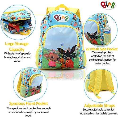 PERFETTO PER LA SCUOLA E LE VACANZE: Questo bisaccia di Bing coniglio è versatile e corretto per la scuola e le vacanze. È dotato di uno scomparto stazione con cerniera, una frontale, due tasche ai lati, una maniglia e spallacci imbottiti e regolabili