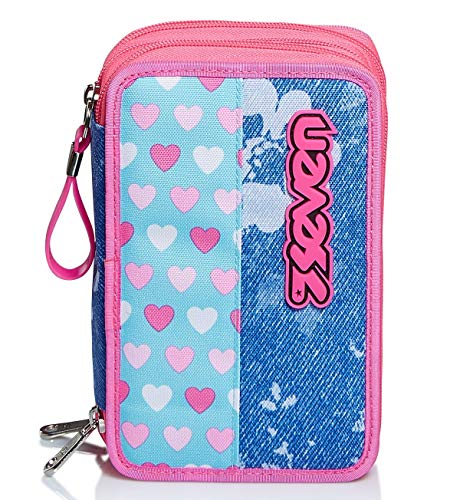 Astuccio 3 Scomparti Seven, Flying Dreams Blu, Completo di matite, penne, pennarelli