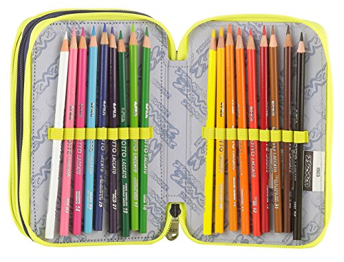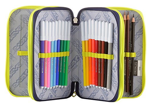 Astuccio 3 Zip Seven , LUCKY , Blu Giallo , Con: matite, pennarelli..