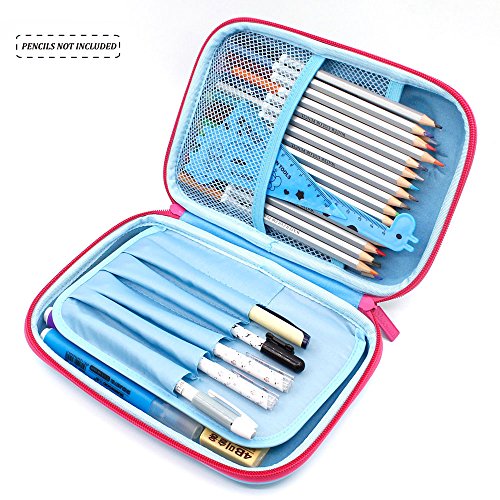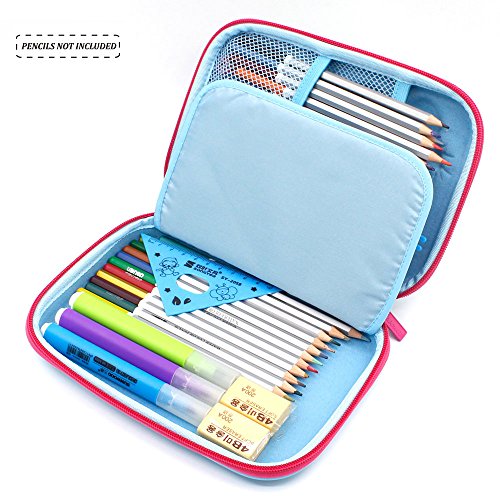 Troverete 2 tasche a rete, 5 slot per matite nella patta centrale e più spazio sotto lo strato per riporre penne, matite, matite colorate, pennarelli, gomme, forbici, gonieri, piccoli notebook e molto altro ancora.
