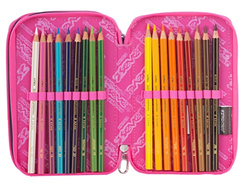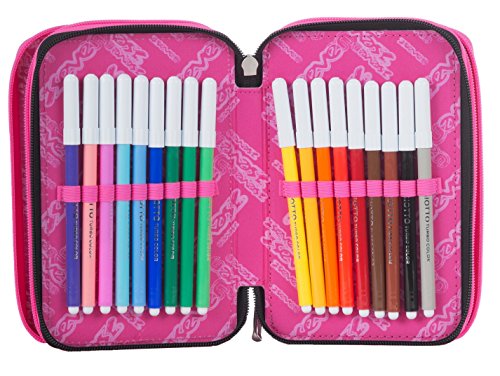 ALTRE CARATTERISTICHE:Triplo scomparto. CONTENUTO: 1 penna a disco cancellabile , 1 penna a disco rossa, 1 matita, 1 gomma, 1 temperino, 1 righello, 1 goniometro, 1 forbice, 1 penna a disco, 1 glutine, 18 pastelli, 18 pennarelli.