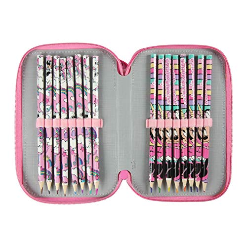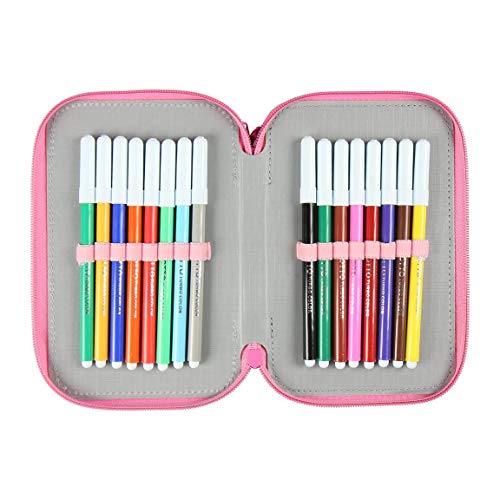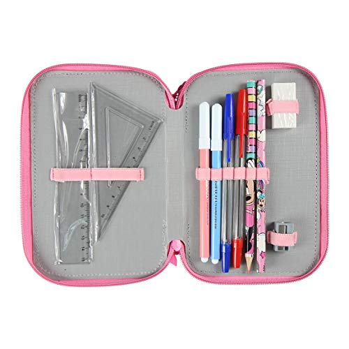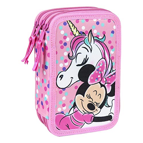 Disney Minnie Unicorno 2100002500 Astuccio Triplo Riempito, 3 Scomparti, 42 pezzi, Poliestere, Rosa