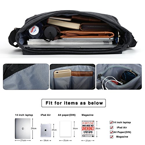 【OCCASSIONI】Capiente. Classica. Pratica. Ideale. La borsa a spalla contiene tutto l’essenziale alla portata di mano. La borsa messenger perfetta e multifunzionale per uso quotidiano come lavoro, fiere, weekend, visite, scuola, liceo e università ecc. Spaziosa ma non ingombrante ed anche il SuperRegalo delle feste per figli, fidanzati, genitori, amici e colleghi. 【MATERIALE】 La borsa a tracolla da uomo è fatta in tela di ottima qualità nonchè con lavorazioni delicate ed accessori metallici: antigraffio, resistente e traspirante ma non impermeabile, facile da pulire. 【DIMENSIONE】Circa 28X35X9.5cm, 0.62Kg. Nero. Monospalla. La tracolla è regolabile ed anti-scivolo: lunga140cm, larga3.8cm, alta68cm, adatta per persone tra 150 cm e 195 cm. 【STRUTTURA】La tasca posteriore con cerniera rende gli oggetti importanti più sicuri e vicini a te. La tasca principale con cerniera ospita PC da 14 pollici, Ipad, libri ,documenti, appunti ed altri oggetti quotidiani ecc. La tasca sulla copertina e le due tasche a fianco, Vi garantiscono il rapido accesso agli oggetti più usati. All’interno ci sono le altre piccole tasche con un design adeguato per contenere vari piccoli oggetti. 【GARANZIA】Ci dedichiamo, con la sincerità e la passione, a offrir Vi il miglior servizio cliente. Per tutte le esigenze sui prodotti ESHOW, si prega di contattarci e saremo sempre alla vostra disposizione. Grazie!