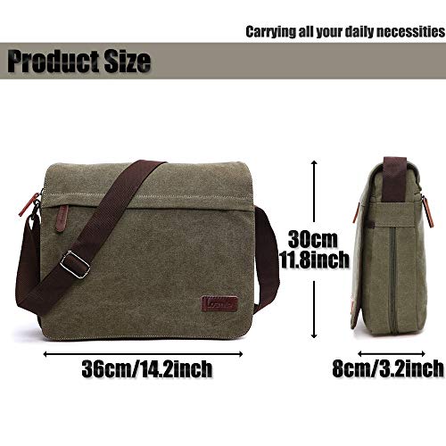 Materiale principale: Tela di alta densità. Rivestimento in cotone morbido. Tracolla regolabile. Dimensione: Cinghia di spalla:71cm-139cm .L*H*W:36x30x8cm .Puoi mettere 13 “-14” PC portatili, A4 Libri, ipad, bicchieri, portafogli, portachiavi, cellulare, ombrello, documento e sigarette nella borsa. Struttura: { Copertura del sacchetto }Tasca cerniera * 1,{ Indietro} Tasca cerniera * 1,{ Davanti} Tasca aperta * 1, Tasca cerniera * 1,{ Pocket principale} Una grande tasca con zip contenente un mezzanino del computer e una tasca sicura della cerniera. Design: Basso tenore di carbonio, ecologico, tela di alta qualità con uno stile semplice che rispecchia l’atteggiamento sano e rilassato alla vita. Funzione: Borse a spalla,Borse Messenger di tela, Borse per PC portatili, Viaggio o scuola. 4 colori disponibili, anche idee regalo perfetto!