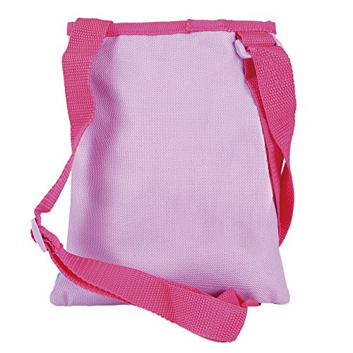 Borsa Tracolla piatta Bambina con stampa Dottoressa Peluche – Pratica borsetta messenger con patella frontale – Tracollina regolabile rosa e azzurra da viaggio e tempo libero – Perletti 21×18 cm