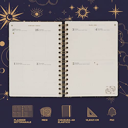 🌙⭐️PERSONALITÀ: sei stanco dei soliti diari banali, tutti uguali? Distinguiti dalla massa! Scegli un diario 2022-2023 originale: la copertina di quest’agenda farà emergere il tuo carattere e darà un pizzico di fantasia alle tue giornate. La rilegatura a spirale la rende comoda alla scrittura e la chiusura elastica mantiene al sicuro tutto il suo contenuto