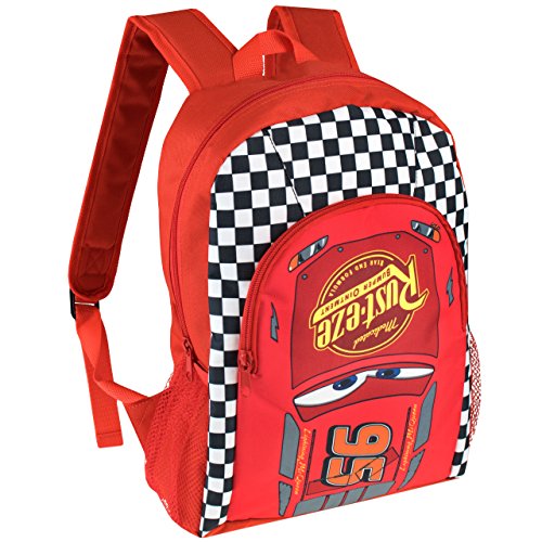 Zaino di Disney Cars per bambini. Per il tuo piccolo prepararsi per andare a scuola sarà un emozione grazie a questo fantastico zaino. Tutti i bambini che adorano Disney Pixar Cars viaggeranno verso le loro avventure quotidiane alla velocità della luce con questo versatile zaino con una grande tasca principale con cerniera lampo, una pratica tasca frontale e due taschine laterali. Caratterizzato da una stampa di Saetta McQueen su uno sfondo vivace che riporta la bandiera a scacchi di Cars, i fan potranno usare questa borsa con orgoglio.