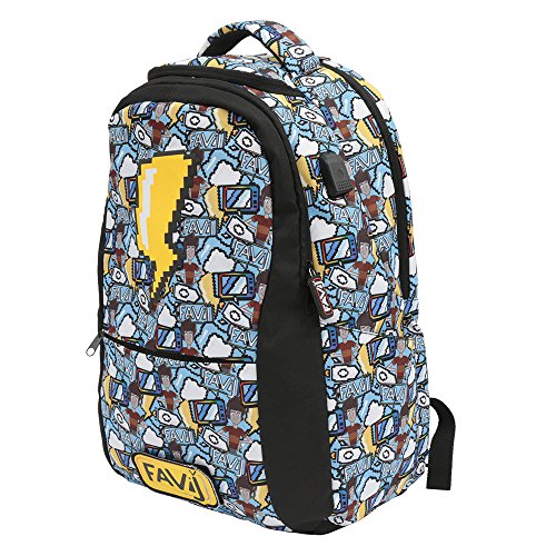 Quest’annata vai a scuola da FAVIJ. Bisaccia da schienale e spallacci imbottiti, frontale da patch del logo FAVIJ intercambiabile. Doppiofondo centrale da portello laptop rinforzata. laterale da portello power bank e fondo incorporato. Dettagli curati e grafiche originali FAVIJ. Statura: 40 x 14 x 26,5 cm.