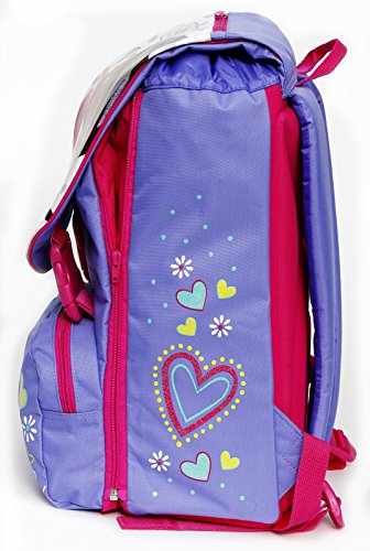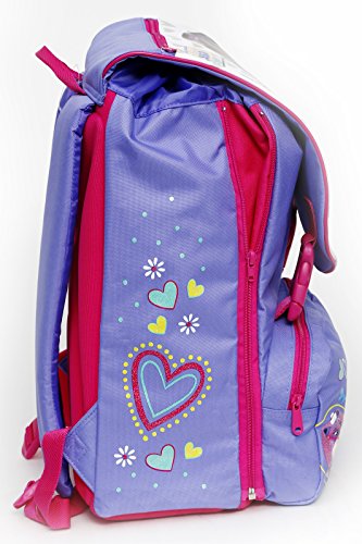 Rivivi le avventure di Dottie con l’originale zaino scuola. Zaino in tessuto con grafiche personalizzate sulla patella, tasca frontale e bande laterali: articolo impreziosito da ricami e dettagli in glitter. La cartella presenta spallacci regolabili (ed imbottiti), completo di schienale ergonomico. La cartella possiede un ampio vano interno per riporre libri e materiale scolastico di grandi dimensioni e due tasche con l’accesso dall’esterno (una posta sulla patella superiore e una posta sulla patella inferiore). Sui due lati è presente una cerniera che -se aperta- permetterà di aumentare il volume di carico dello zaino, creando un nuovo scomparto. La cartella è completa di pratici moschettoni colorati posti sul fronte che permetteranno di accedere velocemente ai vani interni.