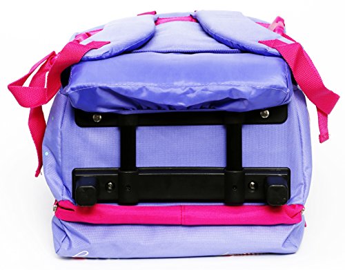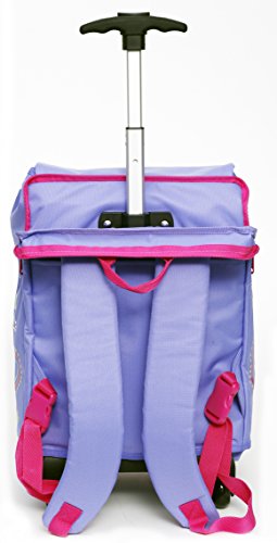 Rivivi le avventure di Dottie con l’originale zaino scuola. Pratico zaino in tessuto che -all’occorrenza- diventa un comodo trolley. Nel dettaglio, l’articolo presenta un manico in alluminio allungabile e posizionato in uno scomparto (a scomparsa) richiudibile con cerniera dedicata. La maniglia è rivestita in gomma, in modo da garantire una presa sicura durante la fase di trasporto: alla base dello zaino è presente un carrello composto da due ruote. L’articolo presenta spallacci regolabili (ed imbottiti), completo di schienale ergonomico. La cartella possiede un ampio vano interno per riporre libri e materiale scolastico di grandi dimensioni e due tasche con accesso dall’esterno (una posta sulla patella superiore e una posta sulla patella inferiore). Sui due lati sono poste cerniere che -se aperte- permetteranno di aumentare il volume di carico dello zaino (creando un nuovo scomparto). L’articolo presenta pratici moschettoni colorati posti sul fronte che permetteranno di accedere velocemente ai vani interni.