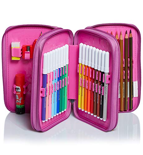CONTENUTO ASTUCCIO: 1 penna cancellabile Pilot Frixion blu, 18 pastelli a colori Giotto Supermina, 18 pennarelli Giotto Turbocolor, 1 colla stick Pritt, 1 penna Fila rossa, 1 evidenziatore Fila Turbofluo, 1 matita Lyra Temagraph, 1 gomma, 1 temperino, 1 righello, 1 goniometro, 1 forbice. CARATTERISTICHE: Divisori in plastica per la sicurezza del contenuto e maggiore praticità.
