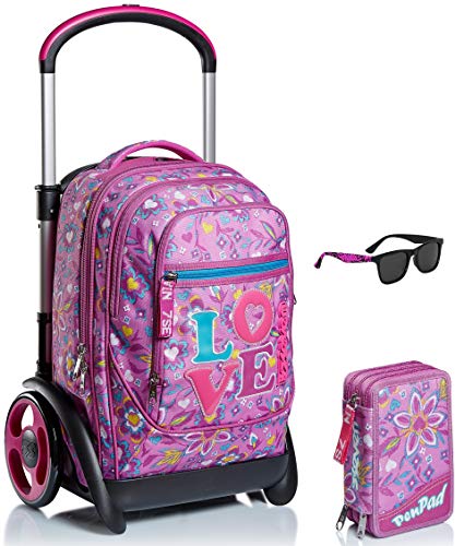 Ecco il nuovissimo Trolley Tyre Seven con un look sempre alla moda grazie al TESSUTO GLITTER. È multiuso: in poche semplici mosse da trolley diventa zaino e viceversa. Il carrello ha fondo rinforzato e protezioni angolari per la massima protezione del contenuto e lo puoi sganciare per quando vuoi utilizzarlo come uno zaino, è lavabile, maxi capiente e comodo da indossare grazie a schienale e spallacci imbottiti. Da trolley invece puoi far scomparire gli spallacci o no. Tanto grazie al CROSSOVER SYSTEM quando sollevi la resistentissima doppia barra telescopica con doppia regolazione in altezza, automaticamente si sollevano anche gli spallacci che in questo modo non strisciano per terra. Infine con la maxi barra e le maxi ruote da 17 cm con Trolley Tyre Love Songs affronterai facilmente qualunque percorso.