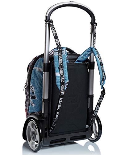 Ecco il nuovissimo Trolley Tyre Seven dallo stile forte e deciso. È multiuso: in poche semplici mosse da trolley diventa zaino e viceversa. Il carrello ha fondo rinforzato e protezioni angolari per la massima protezione del contenuto e lo puoi sganciare per quando vuoi utilizzarlo come uno zaino, è lavabile, maxi capiente e comodo da indossare grazie a schienale e spallacci imbottiti. Da trolley invece puoi far scomparire gli spallacci o no. Tanto grazie al CROSSOVER SYSTEM quando sollevi la resistentissima doppia barra telescopica con doppia regolazione in altezza, automaticamente si sollevano anche gli spallacci che in questo modo non strisciano per terra. Infine con la maxi barra e le maxi ruote da 17 cm con Trolley Tyre Urban Rock affronterai facilmente qualunque percorso.