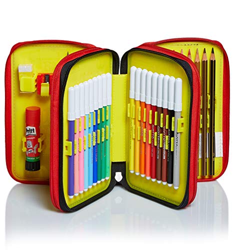DIMENSIONI: 57 x 39 x 28 cm CAPACITA’: 34 LT – DIMENSIONI ASTUCCIO: 20 x 12.5 x 7 cm CARATTERISTICHE: 3 possibili utilizzi: 1) Uso zaino quando completamente sganciato dal carrello. 2) Uso zaino senza sganciare il carrello. 3) Uso trolley con spallacci a scomparsa totale nello schienale. TASCHE: Doppia tasca frontale. SCHIENALE: Imbottito e rivestito in tessuto SPALLACCI: Imbottiti e rivestiti in tessuto. CROSSOVER SYSTEM: i ganci sollevano gli spallacci quando usato come trolley. CONTENUTO: 1 penna cancellabile Pilot Frixion blu, 18 pastelli a colori Giotto Supermina, 18 pennarelli Giotto Turbocolor, 1 colla stick Pritt, 1 penna Fila rossa, 1 evidenziatore Fila Turbofluo, 1 matita Lyra Temagraph, 1 gomma, 1 temperino, 1 righello, 1 goniometro, 1 forbice. CARATTERISTICHE: Divisori in plastica per la sicurezza del contenuto e maggiore praticità. ALTRE CARATTERISTICHE: Maxi ruote da 17 cm e maxi barra. Spallacci a scomparsa totale nello schienale o sollevati da terra tramite il CROSS-OVER SYSTEM quando utilizzato come trolley. Crossover System: sistema di clip per l’aggancio dei nastri alla doppia barra telescopica con doppia regolazione in altezza. Fondo rinforzato e protezioni angolari. Logo in gomma e puller in nastro con moschettone amovibile.