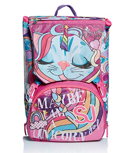 CapacitChiuso: 21 LT – Aperto: 28 LTDimensioni: Chiuso: 27x41x16 cm – Aperto: 27x41x22 cmCaratteristiche: Zaino doppio scomparto estensibile tramite zip laterali. Flip System: due diverse pattine calamitate e occhi su pattina principale in materiale olografico con dettagli stampati. Fantasia all-over, stampa posizionata, fibbie personalizzate, cursori personaGaranzia4 ANNISchienaleErgosystem preformato con fondo integratoSpallacciImbottiti e rivestiti in tessuto e rete traspiranteTasche: Tasca su pattina e tasca frontale con zip.Tessuto: PoliestereAstuccio:Dimensioni: 20×12,5×7 cmCONTENUTO: 1 penna cancellabile blu, 18 pastelli a colori, 18 pennarelli, 1 colla stick, 1 penna rossa, 1 matita, 1 gomma, 1 temperino, 1 righello, 1 goniometro, 1 forbice.Garanzia2 ANNITasche: 3 scomparti con apertura a zipTessuto: Poliestere
