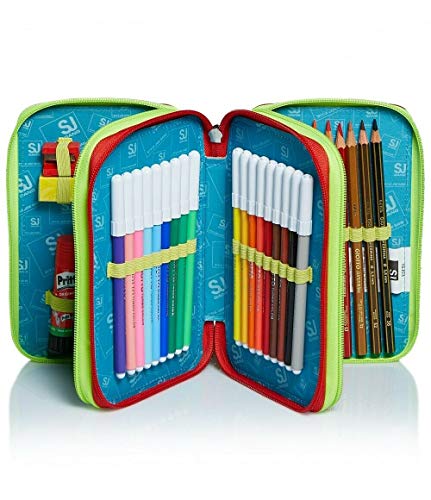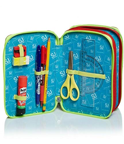 SCHOOLPACK ZAINO SJ GANG FACE CARATTERISTICHE: Zaino doppio scomparto estensibile tramite zip laterali. Flip System: due diverse pattine calamitate e occhi su pattina principale in materiale olografico con dettagli stampati. Fantasia all-over, stampa posizionata, fibbie personalizzate, cursori personalizzati. TASCHE: Tasca su pattina e tasca frontale con zip. SCHIENALE: Ergosystem preformato con fondo integrato SPALLACCI: Imbottiti e rivestiti in tessuto e rete traspirante DIMENSIONE: Chiuso: 27x41x16 cm – Aperto: 27x41x22 cm ; CAPACITA’: Chiuso: 21 Lt – Aperto: 28 Lt + ASTUCCIO 3 ZIP SEVEN CONTENUTO: 1 penna cancellabile blu Pilot Frixion – 1 penna Fila rossa Tratto Uno Grip, 1 matita HB Lyra, 18 pastelli colorati Fila Giotto Supermina, 18 pennarelli Fila Giotto Turbocolor, 1 gomma, 1 colla stick Pritt, 1 temperino, 1 righello trasparente, 1 goniometro trasparente, 1 paio di forbici con la punta arrotondata. Dimensioni 19,5 x 12 x 6,5 cm circa