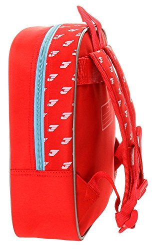 Zaino di 23 cm x 28 cm x 10 cm realizzato in microfibra con frontale in PVC Tasca laterale e tasca frontale per conservare la bottiglietta d’acqua, piccoli accessori e la merenda Sistema Magic Fix per ottenere un maggiore fissaggio dello zaino al carrello Fascia posteriore per adattarlo allo zaino, al carrello o per portarlo agganciato alla valigia By Next Door