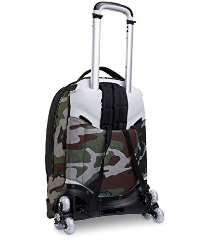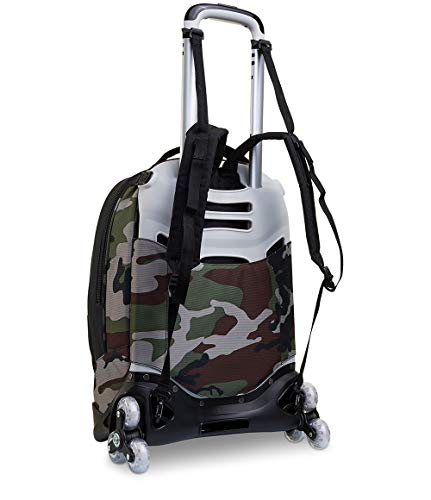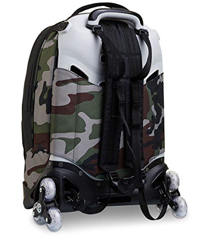 SCHIENALE: Imbottito e rivestito in tessuto. SPALLACCI: Imbottiti e rivestiti in tessuto e rete traspirante. CROSSOVER SYSTEM: i ganci sollevano gli spallacci quando usato come trolley.