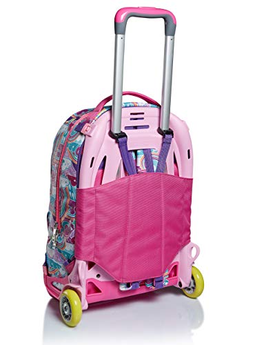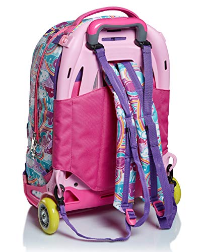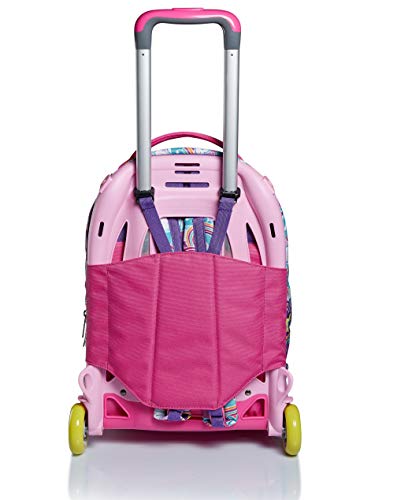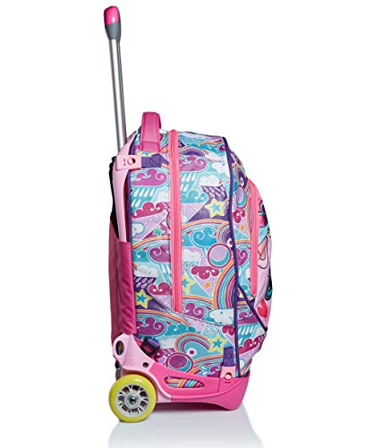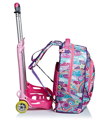 DIMENSIONE: 38x50x26 cm; CAPACITA’: 33 Lt CARATTERISTICHE: Trolley scomponibile con Crossover System, il sistema “salva spallacci”. 3 possibili utilizzi: 1) uso trolley con spallacci a scomparsa totale nello schienale; 2) uso zaino senza sganciare il carrello; 3) uso zaino quando completamente sganciato dal carrello (zaino lavabile) con funzione di blocco superiore spallacci. Fantasia all-over. SPALLACCI: Imbottiti e rivestiti in tessuto. CROSSOVER SYSTEM: i ganci sollevano gli spallacci quando usato come trolley. SCHIENALE: Imbottito e rivestito in tessuto ALTRE CARATTERISTICHE: Doppia barra telescopica con due regolazioni in altezza, ruote da 70 mm, fondo rinforzato e protezioni angolari. Tessuto Glitter.