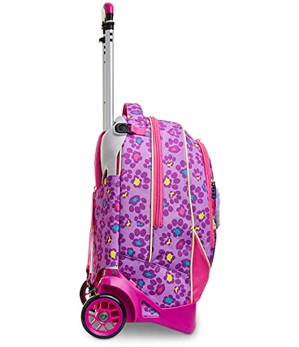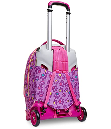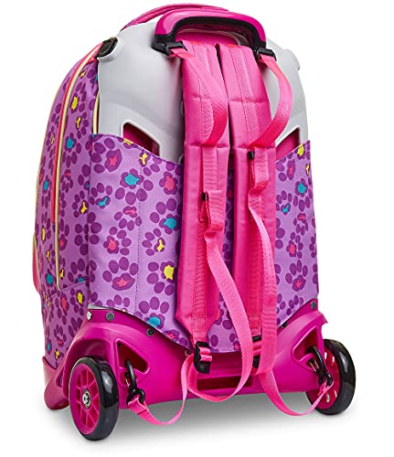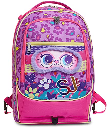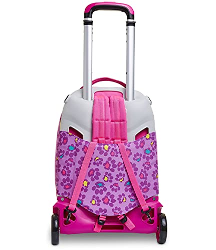 Ciao! Sono il nuovo Trolley Jack-2WD ANIMALI FANTASY DA SJ GIRL, pieno di colore e multiuso. Infatti, in poche semplici mosse da trolley divento zaino e viceversa. Il mio carrello ha fondo rinforzato e protezioni angolari per dare stabilità al trolley e protezione al contenuto. Lo sganci e divento uno zaino lavabile, maxi capiente, dotato di tasca frontale con una fantastica applicazione in peluche e comodo da indossare grazie a schienale e spallacci imbottiti e rivestiti in tessuto. Spallacci che, se mi usi come trolley, possono essere a scomparsa o, grazie al CROSSOVER SYSTEM, sollevarsi automaticamente tirando su la resistente doppia barra telescopica con due regolazioni in altezza, evitando che i nastri striscino a terra. Infine con le maxi ruote da 10 cm trascinarmi lungo tutti i percorsi della tua giornata è facilissimo.