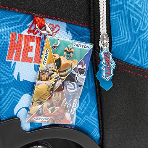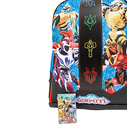 Trolley spinner con 3 ruote, meccanismo “stairs no stop” – Dimensioni: 34 x 47 x 23 cm, 36 litri Tasca frontale, tasca interna, maniglia in tessuto, spallacci e schienale rinforzato imbottiti Maniglia telescopica, carrello con ruote rinforzate, copriruote sagomate Dettagli curati e fedeli al cartone animato Gormiti Interazione con il logo sulla patella frontale per accendere i 4 simboli dei Lord