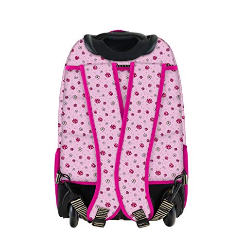 Spallacci regolabili che possono essere ripiegati Impugnatura più maniglia del carrello allungabile a più altezze 3 scomparti principali con zip con tasca imbottita per laptop Include portapenne nella tasca frontale e portabottiglie Tessuto glitterato con ciondolo a forma di cuore. Circa 34 x 20 x 45 cm