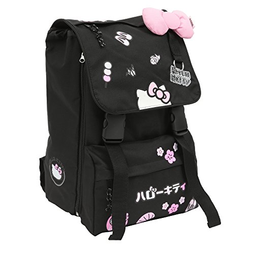 Zaino estensibile con cerniera per aumentare la capacità di carico (+ 9 cm) Zaino comodo e capiente con schienale “Comfort back” e spallacci imbottiti Tasca frontale, tasca interna, maniglia in tessuto Colore: nero Un fiocco in stile Hello Kitty applicato sul fronte dello zaino che diventa un accessorio moda/capelli per la bambina
