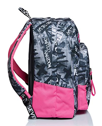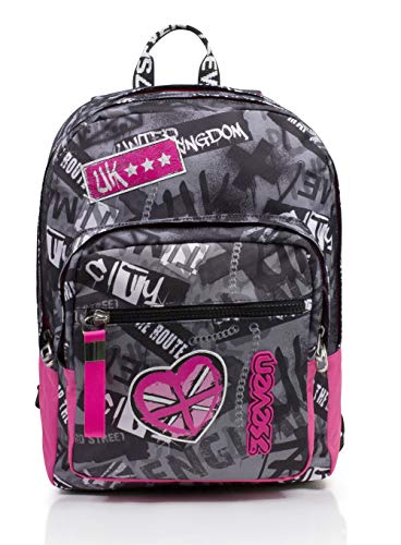 Dimensioni: 43x30x18,5 cm; capacita’: 31 lt Caratteristiche: doppio scomparto Tasche: maxi tasca frontale attrezzata, tasca con tirazip in silicone, incluso portamonete in abbinato Spallacci: imbottiti e rivestiti in tessuto e rete traspirante Schienale: preformato con fondo integrato