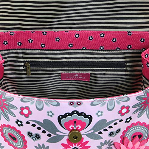 Carino con il cuore My Gift to You Arte in una gamma di colori pastello lilla, caramelle e rouge, la bisaccia si presenta con una di motivi floreali e strisce monocromatiche iconiche.
