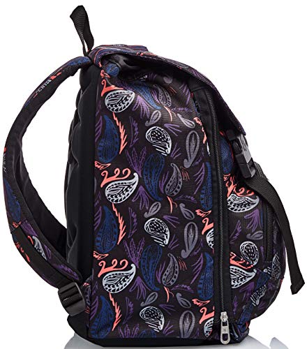 Dimensioni: 41 x 27 x 16 + 6 cm; Capacità: 19 lt chiuso – 28 lt aperto Caratteristiche: doppio scomparto; estensibile tramite zip laterale Tasche: tasca frontale; tasca su pattina Spallacci: imbottiti e rivestiti in tessuto e rete traspirante Schienale: preformato con fondo preformato