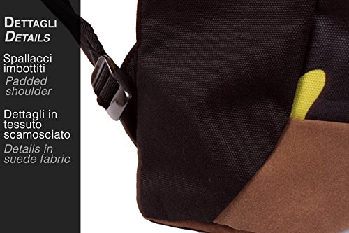 DIMENSIONI: 28 x 40 x 14 cm; cAPACITÀ: 20 lt FUNZIONALI: Dettagli in tessuto scamosciato; tirazip personalizzato in metallo SCHIENALE: in tessuto imbottito; sPALLACCI: imbottiti con nastro tubolare TASCHE: Scomparto interno imbottito porta PC 11”; tasca attrezzata all’interno; tasca su apertura principale TESSUTO: Polyestere