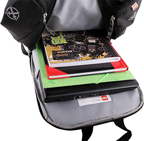 Zaino Venture con schienale ergonomico per una presa sicura, 2 grandi scomparti con tasche per laptop o tablet, piccola tasca anteriore e grandi tasche laterali per astuccio Lego.