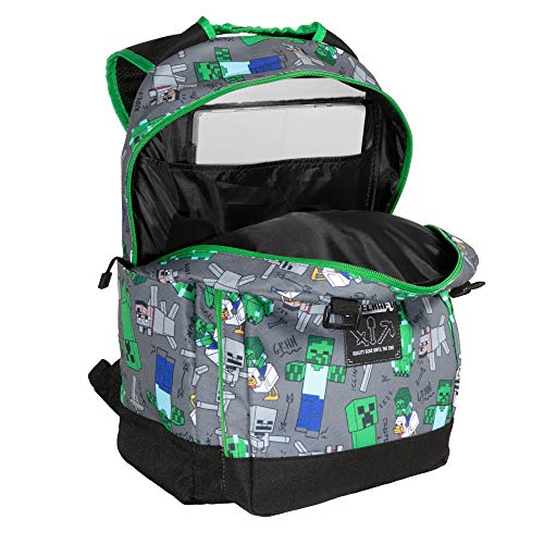 Progettato e creato da JINX Zaino per bambini a grandezza naturale ispirato al videogioco Minecraft Chiusura: Cerniera Zaini Dimensioni: circa 43,2 cm di altezza x 30,5 cm di larghezza x 12,7 cm di profondità. Organizzatore interno, tasca per laptop e personaggi Minecraft che ogni fan potrà godere