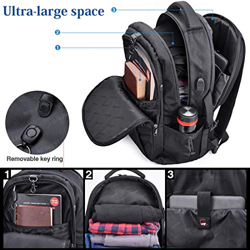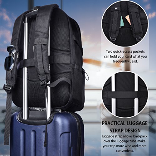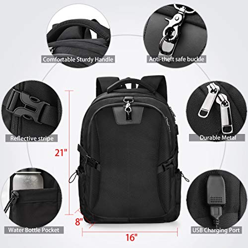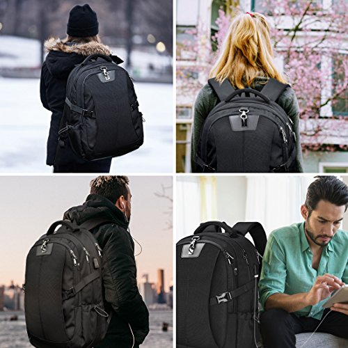 Clicca qui per verificare la compatibilità di questo prodotto con il tuo modello 【Alta qualità e durevole】 Questo zaino da viaggio è realizzato in tessuto di poliestere di alta qualità con fodera in nylon ad alta densità per una migliore resistenza agli strappi e all’acqua, inclusa una fibbia antifurto e cerniere in metallo resistenti che possono proteggere il tuo portafoglio e altri oggetti da essere rubato. 【Design confortevole】 Il design confortevole del dorso del flusso d’aria con imbottitura ventilata a pannelli multipli spessa ma morbida offre il massimo supporto per la schiena. Spallacci traspiranti e regolabili per alleviare lo stress della spalla. Manico superiore imbottito in schiuma per un lungo periodo di trasporto. Una cinghia per il bagaglio consente allo zaino laptop di adattarsi al bagaglio / valigia. 【Dimensione esterna e multifunzione】Zaino pc di grande capacità misura 21”x 16” x 8”,un compartimento per laptop separato può contenere laptop da 17,3 pollici e computer 17 /15,6 pollici.I compartimenti principali e molte tasche possono ospitare un sacco di accessori,come vestiti,articoli di cancelleria,notebook,chiavi.Lo zaino è un ottimo compagno per attività all’aperto/all’aperto e perfetto per l’uso quotidiano in qualsiasi luogo per il campeggio, escursioni,vacanze,viaggio,trekking. 【Design porta USB】 Collegare la propria banca di alimentazione al cavo interno all’interno dello zaino, quindi collegare il cavo di ricarica alla porta USB esterna per collegare il telefono e altri dispositivi elettronici. Porta auricolari Oltre alla porta è comodo per godersi la musica a mani libere. (Lo zaino computer non include l’alimentazione mobile) 【Altre caratteristiche】 Porta per auricolari / cuffie, gancio per occhiali, Airflow-System, fibbie sicure, tasche esterne, tasca di sicurezza. Le caratteristiche extra dello zaino per laptop rendono la vita quotidiana più comoda.