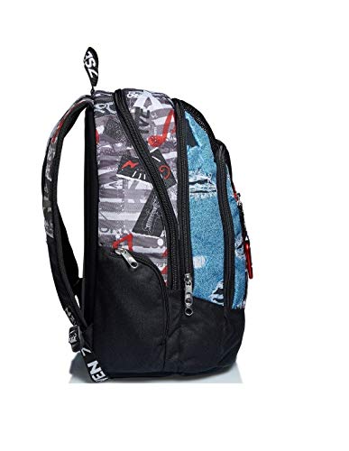 ZAINO SEVEN ADVANCED Zaino con fantasia urban rock. Presenta un ampio doppio scomparto in cui puoi distribuire il carico in maniera ottimale fruttando anche le tasche laterali e quella frontale con organizer, In più ha una tasca per portare con se il tablet o il PC e con la funzione selfie remote control potrai divertirti a fare selfie dove vuoi tu. Lo schienale Ergosystem preformato con fondo integrato e gli spallacci imbottiti e traspiranti lo rendono leggero e confortevole da indossare, proteggendoti la schiena. E con gli inserti rifrangenti sarai più visibile per la tua sicurezza. DIMENSIONI: 31 x 43 x 24 cm CAPACITA’: 30 LT