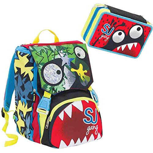 SCHOOLPACK SEVEN SJ BOY FACCINE Zaino + Astuccio 3 Zip Completo Scuola 201920