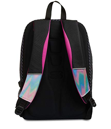 DIMENSIONI: Chiuso: 43,5 x 30 x 15 cm Allargamento: 27,5 x 35 x 6 cm; CAPACITA’: 32 LT SCHIENALE: Ergosystem preformato con fondo integrato. SPALLACCI: Imbottiti e rivestiti in tessuto e rete traspirante. TASCHE: Doppia tasca frontale. Tasca in rete portaboraccia. ALTRE CARATTERISTICHE: Etichetta in gomma con logo SEVEN e spazio personalizzabile. Zip multicolor e tirazip in tessuto. Serigrafia con tessuto cangiante.