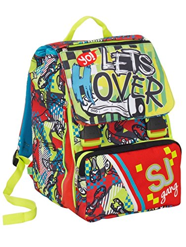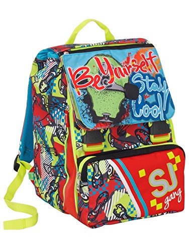 ZAINO SDOPPIABILE SJ GANG CON FLIP SYSTEM! Solo lo zaino sdoppiabile ha il sistema Flip system per cambiare ogni giorno il look del tuo zaino. Questo è l’originale disegnato per darti il massimo della qualità garantita da Seven. Scegli la grafica che meglio rappresenta il look e sfoggia lo stile unico ed inimitabile di SJ Gang. E in più una grande novità: con lo zaino riceverai un set di cards per personalizzare ancora di più il tuo zaino con le mitiche faccine originali di SJ GANG e avrai anche la CARD LUMINOSA l’unica che si illumina. Logo e inserti in materiale rifrangente, fantasia allover. 3 pattine calamitate con differenti fantasie / messaggi. Applicazione in gomma con taschino interno pattina per card luminosa amovibile e set cards abbinate. SCHIENALE Ergosystem preformato con fondo integrato. SPALLACCI Regolabili, imbottiti e rivestiti in tessuto e rete traspirante. Dimensioni: 27 x 41 x 16 cm