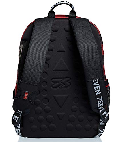 Lo zaino Seven The Double Pro realizzato in ECO MATERIAL resistente di grande qualità, tessuto ecologico perché ottenuto dal riutilizzo di bottiglie in PET, è davvero unico. È spazioso e supertecnologico. Nello scomparto interno ci metti tutto quello che ti serve per la scuola e il tempo libero. Ha una praticissima tasca laterale per le piccole cose e ha tasche per ogni tuo device: interna per PC, sullo schienale per tablet e sullo spallaccio per smartphone. Inoltre è dotato di power bank da 4000 mAh e adattatore USB per avere sempre la tua riserva di carica. Poi lo schienale preformato e gli spallacci imbottiti e traspiranti lo rendono sicuro, leggero e super confortevole da indossare e la stampa floccata gli dona il giusto tocco di stile. È perfetto per te! Cosa aspetti a prenderlo? DIMENSIONI: 44 x 32 x 15 CM; CAPACITA’: 29 LT CARATTERISTICHE: Zaino non reversibile. Scomparto unico e tasca frontale con zip in metallo. Power bank incluso da 4000 mAh e supporto USB per caricabatterie. Chiusura: Cerniera Casual TASCHE: Scomparto interno porta notebook. Tasca porta tablet su schienale. Taschino porta smartphone su spallaccio. Tasca esterna in rete ed elastico. SCHIENALE: Preformato con tasca porta tablet.; SPALLACCI: Imbottiti e rivestiti in tessuto e rete traspirante. TESSUTO: Poliestere Riciclato