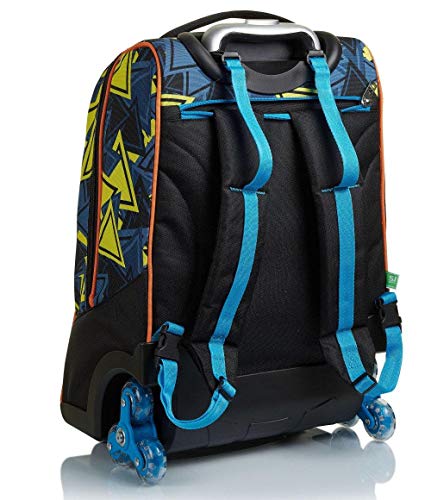 ALTRE CARATTERISTICHE: Sistema a tre ruote che agevola la salita dei gradini. Spallacci a scomparsa totale nello schienale quando utilizzato come trolley. Fondo rinforzato e protezioni angolari.