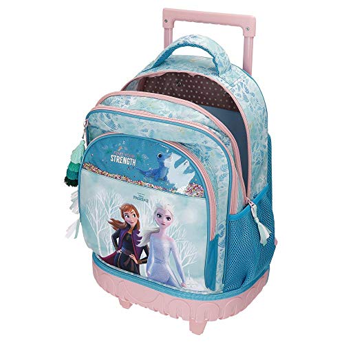 Zaino con ruote di 33 x 44 (57 cm includendo le ruote e il manico telescopico abbassato) x 21 cm realizzato il poliestere Due tasche frontali per migliorare l`organizzazione degli accessori e del materiale scolastico; due tasche laterali per bottiglietta e ombrello Zaino a due ruote Doppia ruota per migliorare l`andamento dello zaino/trolley e apportare maggiore resistenza Schienale rinforzato con llacci larghi, ergonomici e imbottiti che si adattano perfettamente alle lle per offrire il massimo confort possibile e che si possono nascondere se si preferisce portarlo come trolley Portachiavi che completa il design.