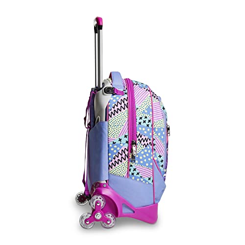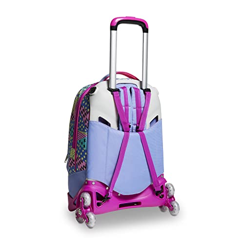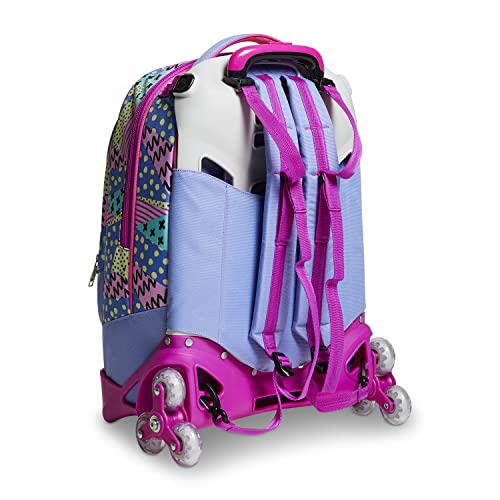 Dimensioni: 37 x 51 x 27 cm. Capacita’: 34 ltSchienale: imbottito e rivestito in tessuto. Spallacci’: imbottiti e rivestiti in tessutoTasche: tasca frontale chiusa con zip.. Altre caratteristiche’: sistema a tre ruote che agevola la salita dei gradini. 3 possibili utilizzi: 1) uso trolley con spallacci a scomparsa totale nello schienale. 2) uso zaino senza sganciare il carrello. 3) uso zaino quando completamente sganciato (zaino lavabile).Tessuto: poliestere con tessuto glitter.