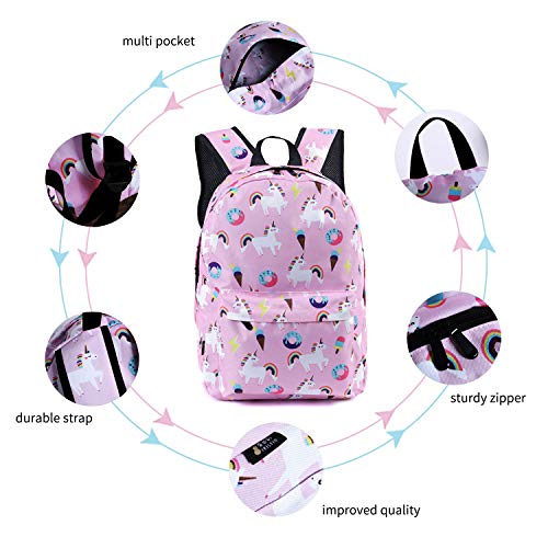 Grande leggero Unicorn zaino School for Girls capacità 16L grande, 11 * 5 * 17 pollici, 0,62 di peso lb, leggero ma detiene tanta roba Multi-vano disegno laterale regolabile e cinghie di compressione inferiore stile popolare unicorno con regali unicorno cerniere durevoli e forti selezionati, facile per aprire e chiudere