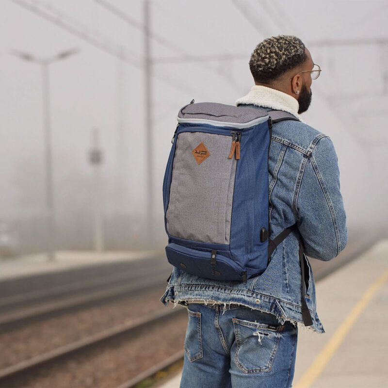Lo zaino viaggio è compatto e di design e ricorda le borse dei corrieri newyorkesi. Con il suo stile sobrio denim (blu jeans) e grigio con tocchi di camoscio marrone, uno scomparto per computer, dispositivi antifurto per fissare le cerniere, due tasche anti-RFID, uno schienale imbottito e ventilato, lo zaino viaggio urban ha tutto il necessario per muoverti comodamente e in sicurezza nelle aree urbane.